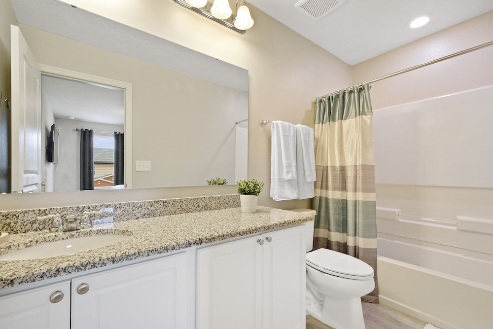 Wanneer je verblijft bij dit vakantiehuis in Kissimmee bevind je je naast het plaatselijke meer, op 5 min. rijden van Oude stad en op 10 min. van Walt Disney World® Resort. Dit vakantiehuis voor families ligt op 8,6 km van Disney Springs™ en op 9,8 km van ESPN Wide World of Sports Complex. Trakteer jezelf op een verblijf in dit vakantiehuis dat individueel gedecoreerd is en beschikt over een privézwembad en een privébubbelbad. Er is een privé balkon of terras. De keuken is uitgerust met een koelkast/vriezer, een oven en een kookplaat. Er is gratis kabelinternet en wifi, en een smart-tv van 60 inch met kabelzenders voor entertainment. Afstanden worden weergegeven tot op 0,1 mijl en kilometer.