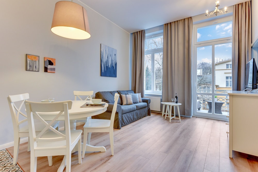 Met een verblijf bij Indygo by 3City Rentals bevind je je in het hart van Sopot, op 5 min. lopen van Grand Hotel en Strand van Sopot. Dit appartement ligt op 0,4 km van Dom Zdrojowy en op 0,7 km van Oriental Thai Massage. Doe of je thuis bent in één van de 2 kamers met kitchenettes, inclusief een kookplaat en een vaatwasser. Terwijl gratis wifi je online houdt, zorgt de flatscreentelevisie van 32 inch voor je kijkplezier. Bij de voorzieningen horen een zitruimte en een waterkoker. Afstanden worden weergegeven tot op 0,1 mijl en kilometer.