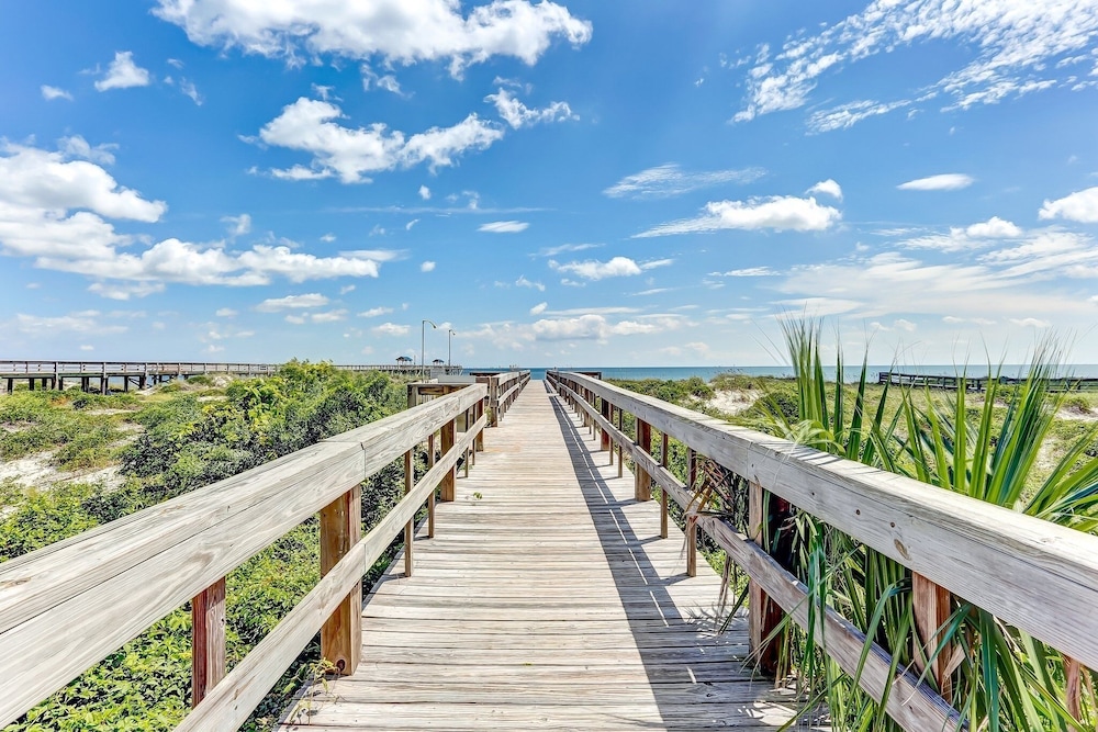 Met een verblijf bij dit appartement in Fernandina Beach, bevind je je aan het strand, op 10 min. rijden van Omni Amelia Island Resort Golf en Fernandina Beach. Dit appartement ligt op 1,6 km van Fernandina Beach Golf Club en op 2 km van Seaside Park. Maak het je gemakkelijk in dit appartement dat beschikt over een keuken met een koelkast/vriezer en een oven. Er is een privé balkon. Een flatscreentelevisie en een dvd-speler zijn voorzien voor je entertainment, en er is gratis wifi om verbonden te blijven. Er zijn verschillende voorzieningen aanwezig, waaronder een magnetron en een koffiezetapparaat/waterkoker. Afstanden worden weergegeven tot op 0,1 mijl en kilometer.