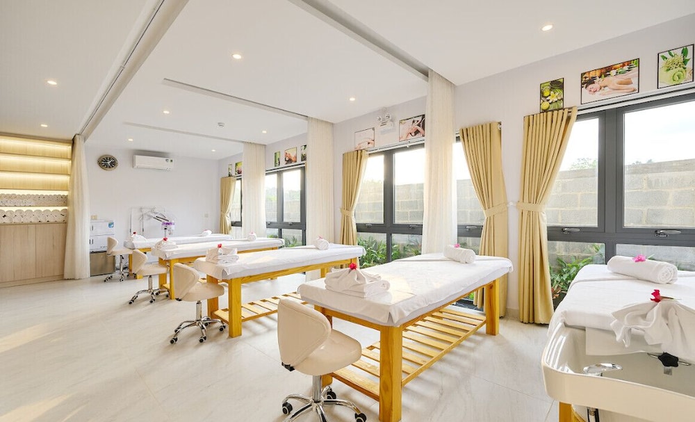 Wanneer je verblijft bij Greenlife Village Phu Quoc in Phu Quoc bevind je je naast de plaatselijke golfbaan, op een kwartiertje rijden van Shophouse Grand World en VinWonders Phu Quoc. Dit hotel voor golfers ligt op 8 km van Corona Casino en op 10,5 km van Ong Lang Beach. Trakteer jezelf op een verblijf in één van de 32 individueel gedecoreerde kamers met keukens. Alle kamers hebben balkons of terrassen. Terwijl gratis wifi je online houdt, zorgt de flatscreentelevisie van 42 inch voor je kijkplezier. Bij de voorzieningen horen een bureau en een zitruimte en de kamers worden dagelijks schoongemaakt. Afstanden worden weergegeven tot op 0,1 mijl en kilometer.