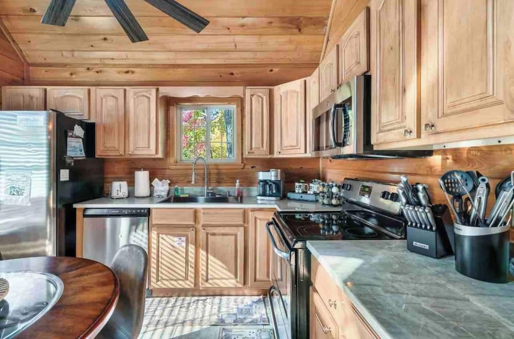 Met een verblijf bij dit huisje in Gatlinburg, in de buurt Chalet Village, bevind je je op 5 min. rijden van Great Smoky Mountains National Park en Gatlinburg Convention Center. Dit huisje in luxe stijl ligt op 3,6 km van Ripley's Aquarium of the Smokies en op 17,7 km van Island at Pigeon Forge. Trakteer jezelf op een verblijf in dit huisje dat individueel gedecoreerd is en beschikt over een open haard en een privéspa buiten. Er is een privé gemeubileerd terras. De keuken is uitgerust met een koelkast, een oven en een kookplaat. Een smart-tv van 75 inch met digitale zenders biedt entertainment en er is gratis wifi om verbonden te blijven. Afstanden worden weergegeven tot op 0,1 mijl en kilometer.