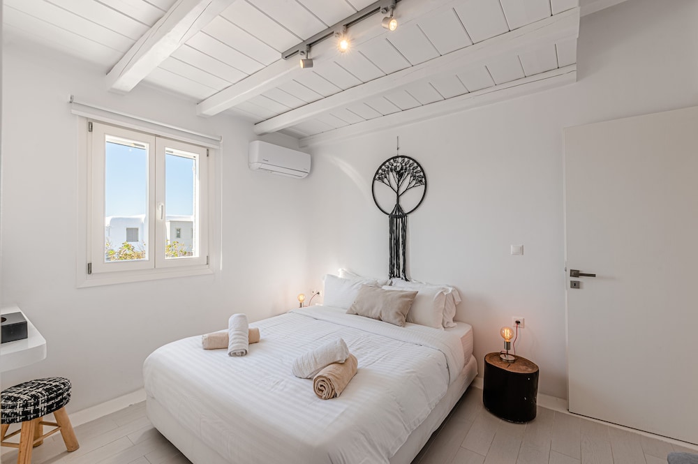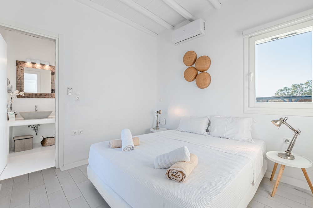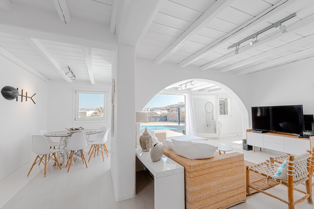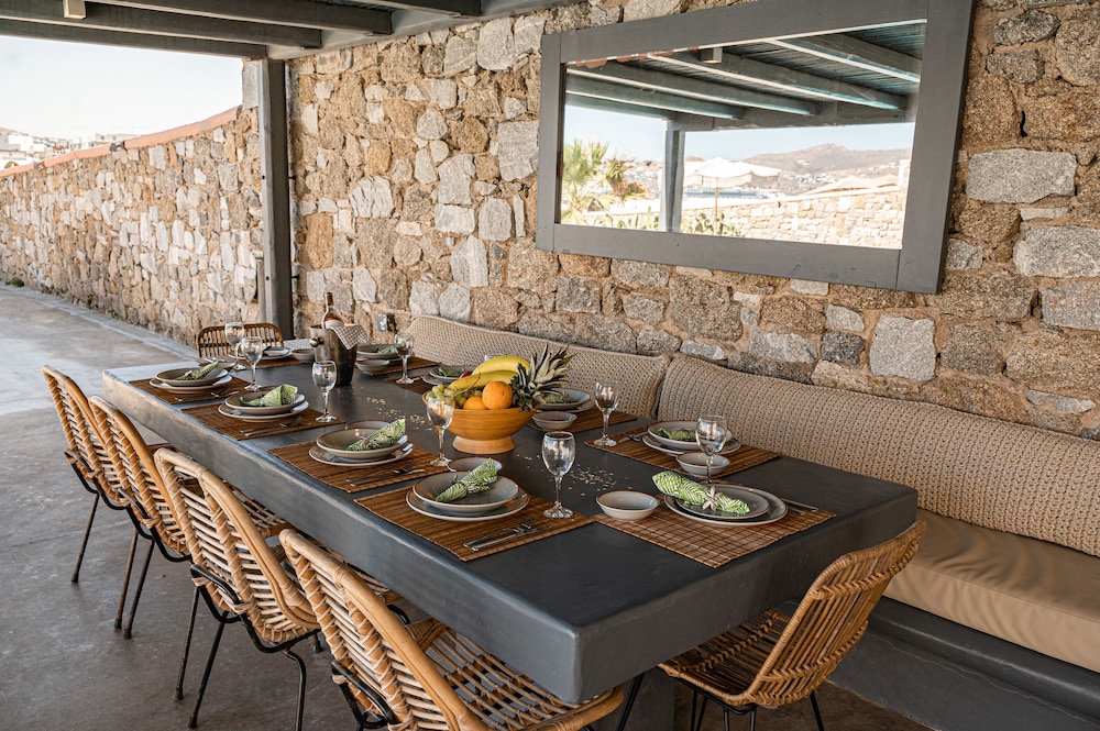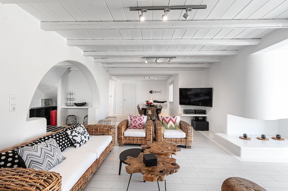 Wanneer je verblijft bij Tohu Villas Mykonos in Mykonos bevind je je vlak bij het strand, op 10 min. rijden van Nieuwe Haven van Mykonos en Windmolens van Mykonos. Deze villa in luxe stijl ligt op 8,6 km van Paradijsstrand en op 6,2 km van Oude Haven van Mykonos. Trakteer jezelf op een verblijf in één van de individueel gedecoreerde kamers met een open haard en een privézwembad. Alle kamers hebben terrassen. De keukens beschikken over een koelkast, een oven en een kookplaat. De kamers hebben een flatscreentelevisie met kabelzenders, terwijl je dankzij gratis wifi online blijft. Afstanden worden weergegeven tot op 0,1 mijl en kilometer.