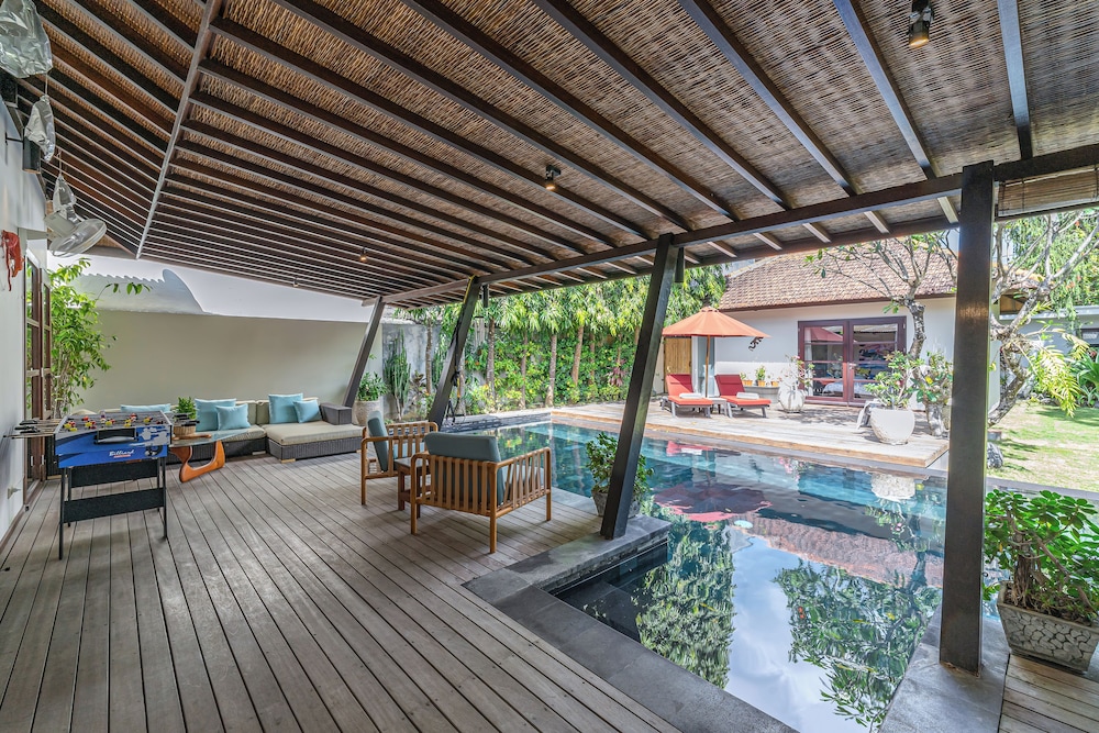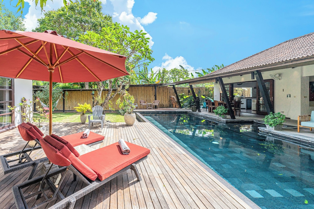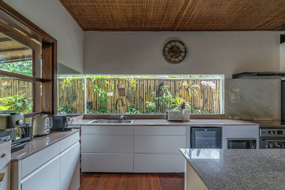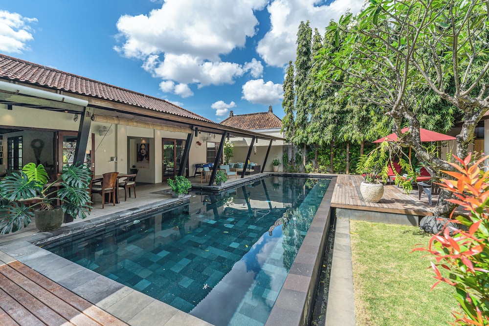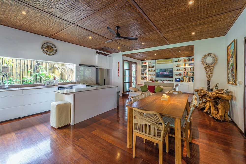 Met een verblijf bij deze villa in Kerobokan bevind je je op 5 min. rijden van Eat Street en Seminyak-plein. Deze villa ligt op 4,5 km van Seminyak Beach en op 6,6 km van Strand van Kuta. Maak het je gemakkelijk in deze villa met airconditioning en een privézwembad. De keuken is uitgerust met een koelkast, een kookplaat en een magnetron. Er zijn verschillende voorzieningen aanwezig, waaronder een kluis en een bureau, en je kunt ook een strijkplank/strijkijzer aanvragen. Afstanden worden weergegeven tot op 0,1 mijl en kilometer.