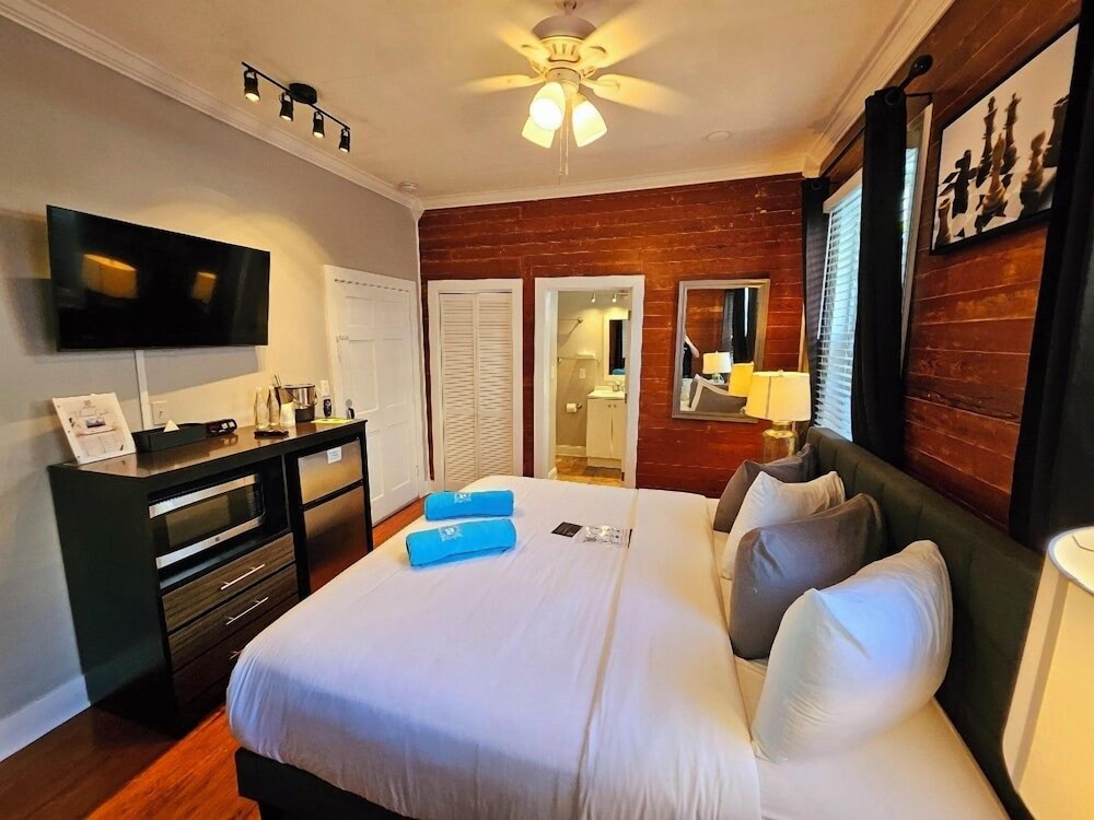 Met een verblijf bij Bishop Hotel Key West in Key West, in de buurt Oude stad van Key West, bevind je je op een kwartiertje lopen van Duval Street en Stranden van Florida Keys. Dit pension ligt op 1,3 km van Museumhuis van Ernest Hemingway en op 1,4 km van Mallory Square. Doe of je thuis bent in één van de 34 klimaatgeregelde kamers met een magnetron. Je bed met pillowtop matras komt met lakens van Egyptisch katoen. Er is gratis wifi op de kamer als je op het internet wilt surfen. Badkamers beschikken over gratis toiletartikelen en haardrogers. Afstanden worden weergegeven tot op 0,1 mijl en kilometer.