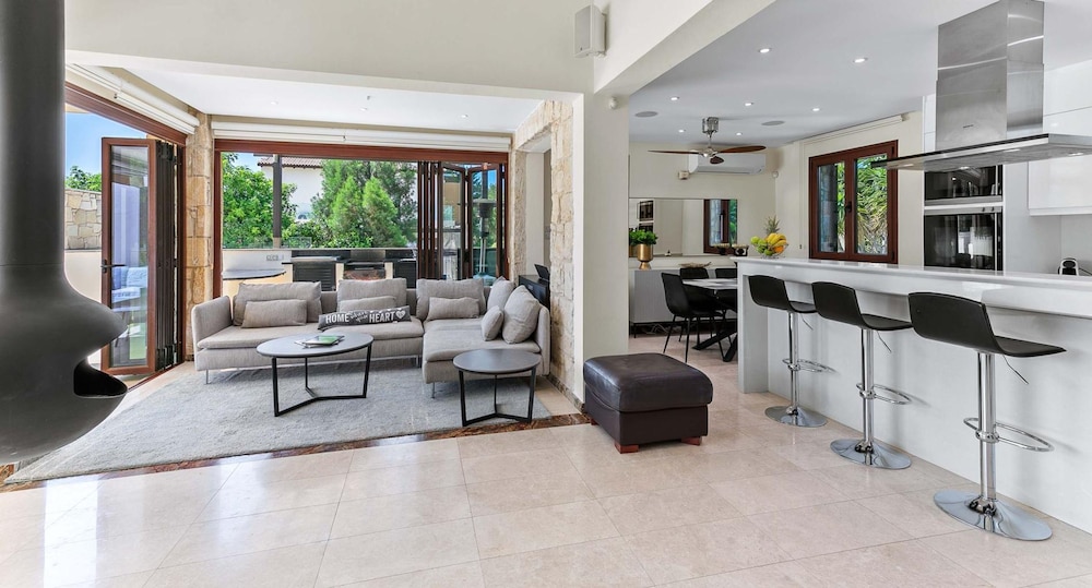Wanneer je verblijft bij Villa 35 - Poseidon in Kouklia in Kouklia bevind je je vlak bij het strand, op een kwartiertje lopen van Aphrodite Hills Golf en Ruiterclub van Aphrodite Hills. Deze villa voor families ligt op 26,2 km van Haven van Paphos en op 5 km van Rots van Aphrodite. Doe of je thuis bent in één van de 11 kamers. Afstanden worden weergegeven tot op 0,1 mijl en kilometer.