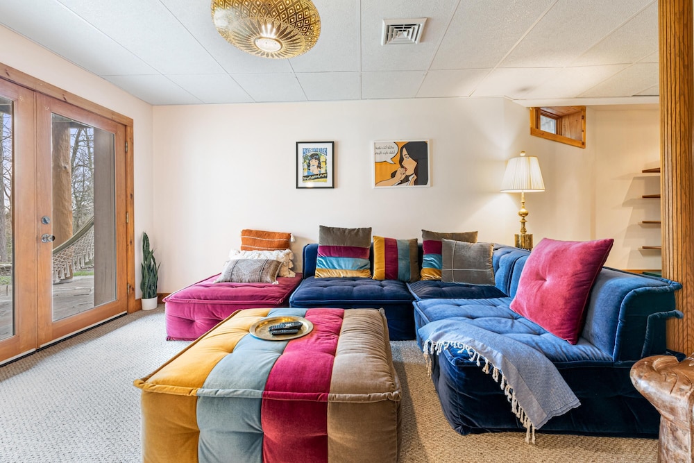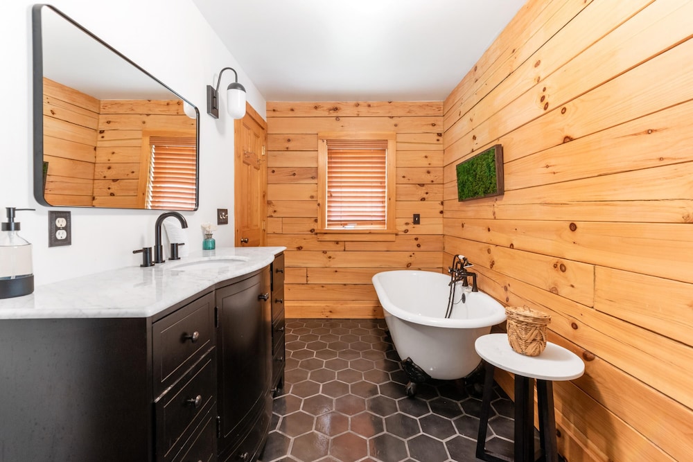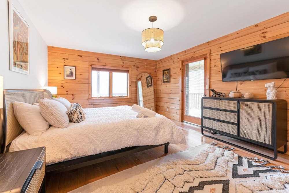 Wanneer je verblijft bij Sun-filled Log Home on 20 Prvt Acres Nr Rhinebeck in Red Hook bevind je je op 10 min. rijden van Red Hook Golf Club en Center for Performing Arts at Rhinebeck. Dit vakantiehuis ligt op 4,3 km van Northern Dutchess Botanical Gardens en op 8,4 km van Old Rhinebeck Aerodrome. Doe of je thuis bent in één van de 7 kamers. Afstanden worden weergegeven tot op 0,1 mijl en kilometer.