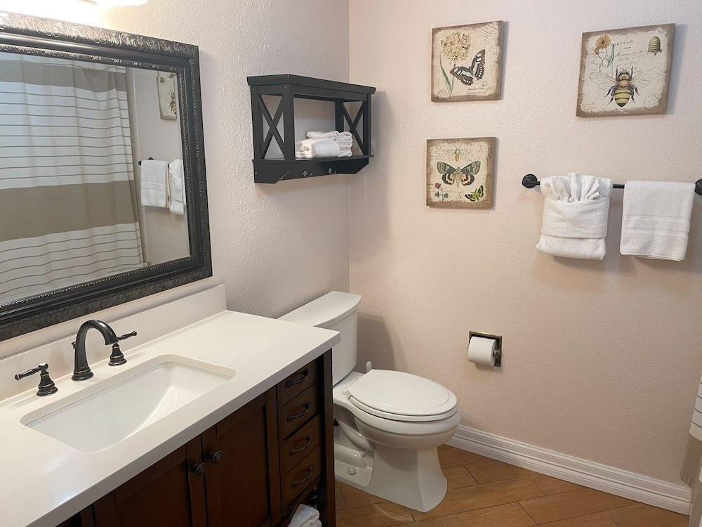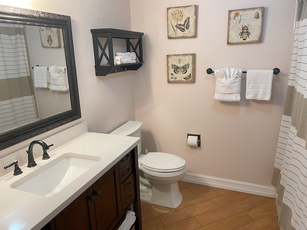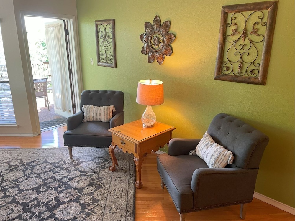 Dit appartement ligt in New Braunfels, in de buurt Eastside, vlak bij Comal River en op 9 min. lopen van Schlitterbahn New Braunfels Waterpark. Dit appartement voor golfers ligt op 1,1 km van Guadalupe River en op 5,3 km van Gruene Hall. Maak het je gemakkelijk in dit appartement dat beschikt over een koelkast en een magnetron. Er is gratis wifi beschikbaar om verbonden te blijven. De badkamer heeft een bad of douche.Er zijn verschillende voorzieningen aanwezig, waaronder een koffiezetapparaat/waterkoker en een wasmachine. Afstanden worden weergegeven tot op 0,1 mijl en kilometer.