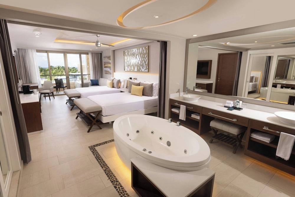 Met een verblijf bij Royalton Riviera Cancun, An Autograph Collection All-Inclusive Resort & Casino - Newly Renovated in Puerto Morelos, bevind je je op 10,3 km van Golfbaan El Tinto en op 20,4 km van Stadsplein van Puerto Morelos. Deze accommodatie met alles inbegrepen ligt op 0,1 km van Nationaal park Costa Occidental de Isla Mujeres, Punta Cancún y Punta Nizuc en op 9,5 km van Moon Palace Golf Club. Doe of je thuis bent in één van de 833 kamers met mp3-docks en gratis minibars. Alle kamers hebben een balkon. Alle kamers hebben een plasmatelevisie van 49 inch met kabelzenders, terwijl je dankzij gratis wifi online blijft. De badkamers met aparte badkuipen en douches hebben elk een bubbelbad en een regendouche. Afstanden worden weergegeven tot op 0,1 mijl en kilometer.