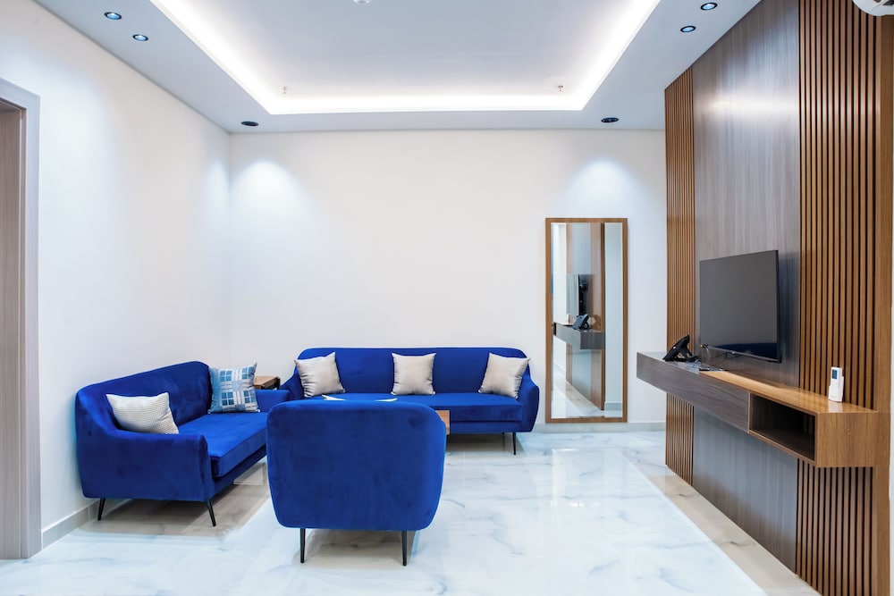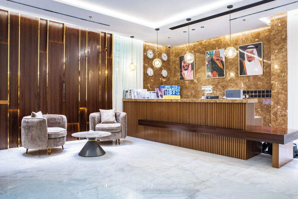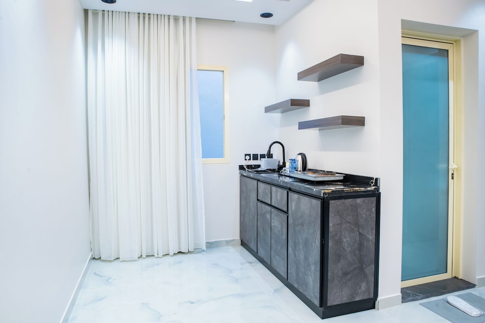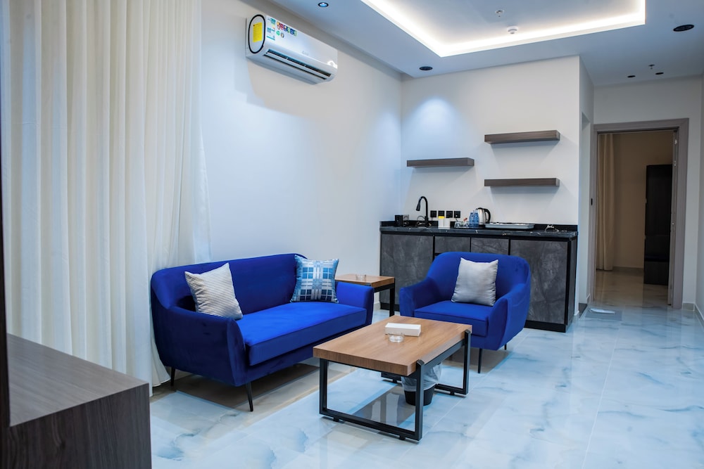 Met een verblijf bij Fajr Al Waha Serviced Apartments bevind je je centraal in Riyad, op een kwartiertje rijden van Al Hamra Mall en Shuhada Park. Dit appartement ligt op 28,7 km van Al Batha-markt en op 9,4 km van Mouwasat Ziekenhuis. Trakteer jezelf op een verblijf in één van de 31 individueel gedecoreerde kamers met kitchenettes. Je bed met Tempur-Pedic matras komt met lakens van Egyptisch katoen. Alle kamers hebben een flatscreentelevisie van 55 inch met satellietzenders, terwijl je dankzij gratis wifi online blijft. Bij de voorzieningen horen een kluis en een zitruimte. Afstanden worden weergegeven tot op 0,1 mijl en kilometer.