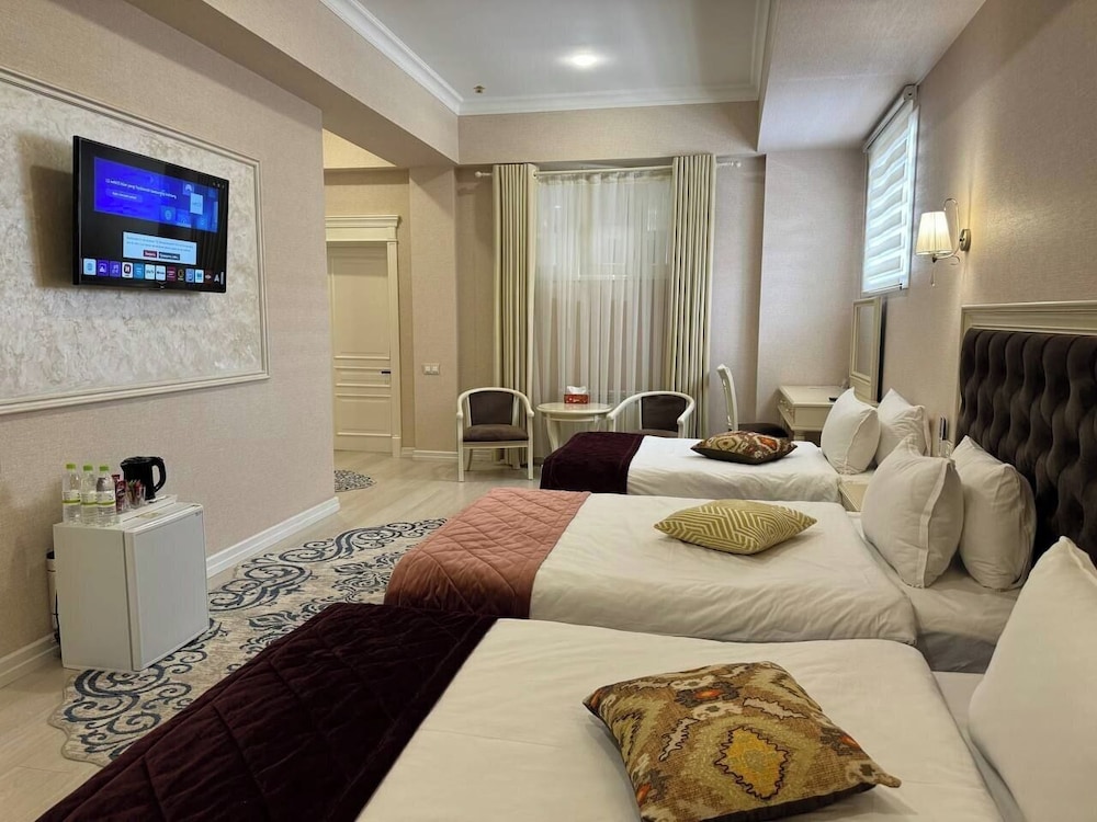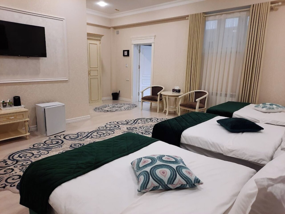 Met een verblijf bij al Madina Hotel Samarkand in Samarkand bevind je je op een kwartiertje lopen van Rooms-Katholieke Kerk St. John en Orthodoxe Kerk van St. Aleksyi. Dit hotel ligt op 1,8 km van Mausoleum van Gur-Emir en op 2,5 km van Registan-plein. Doe of je thuis bent in één van de 32 kamers. Er is gratis wifi op de kamer als je op het internet wilt surfen. Bij de voorzieningen horen een telefoon, net zoals een kluis en een strijkplank/strijkijzer. Afstanden worden weergegeven tot op 0,1 mijl en kilometer.