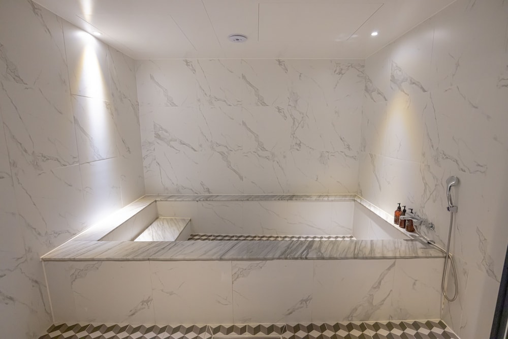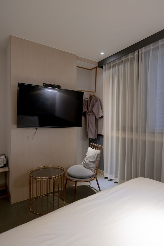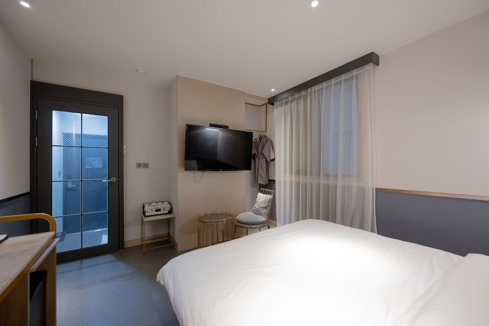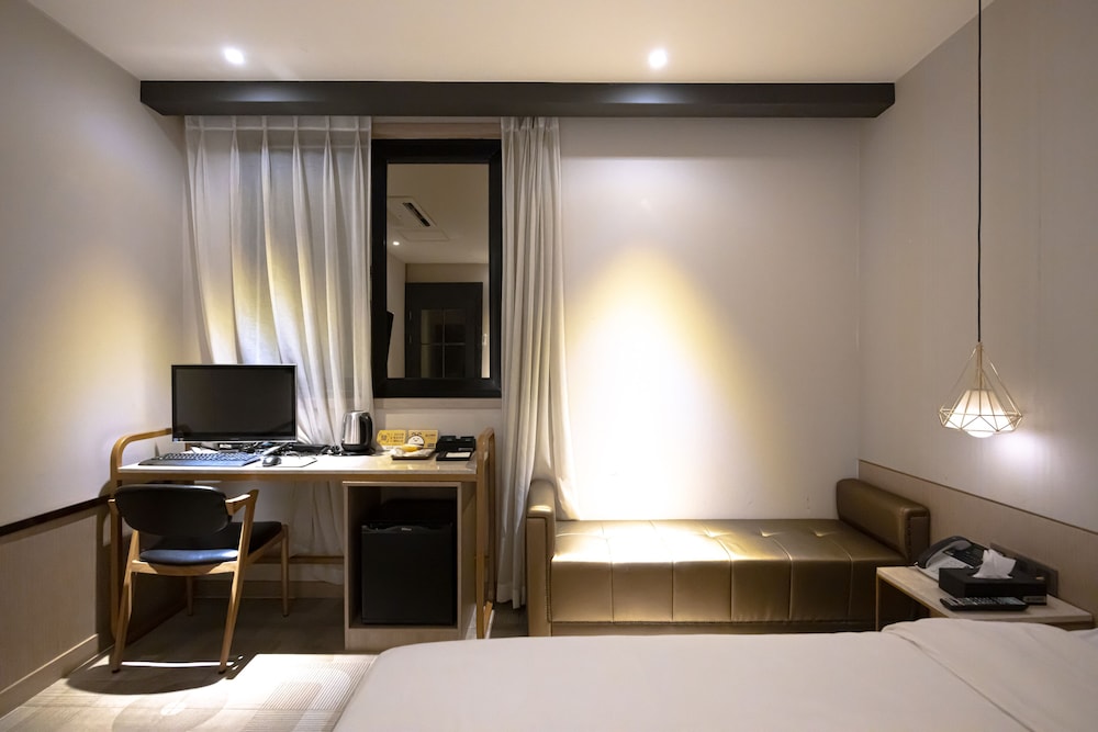 Met een verblijf bij Hound Hotel Seomyeon - Bumcheon in Busan, in Seomyeon, bevind je je op 2 min. rijden van Warenhuis Lotte Busan en op 6 min. van Nampodong Street. Dit hotel ligt op 6,8 km van Strand van Gwangalli en op 12,5 km van Strand van Haeundae. Trakteer jezelf op een verblijf in één van de 58 individueel gedecoreerde kamers met vloerverwarming en een flatscreentelevisie. Dankzij een computer met gratis wifi en kabelinternet blijf je online en kabelzenders zorgen voor het kijkplezier. De badkamers met aparte badkuipen en douches hebben elk diepe baden en designer toiletartikelen. Voorzieningen zijn bijvoorbeeld een bureau, een zitruimte en een telefoon met gratis lokale gesprekken. Afstanden worden weergegeven tot op 0,1 mijl en kilometer.