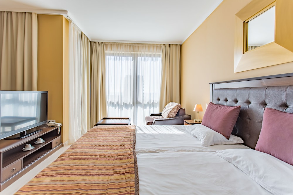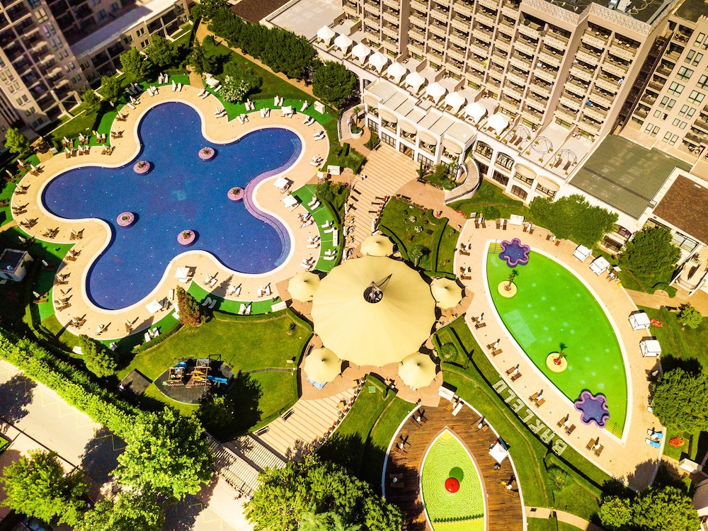 Enkele van de voorzieningen zijn een businesscentrum, een stomerij/wasserijservice en een 24-uurs receptie. Plan je een evenement in Nessebar? Kies voor dit hotel met 180 vierkante meter aan ruimte, waaronder een conferentiecentrum en een vergaderruimte. Een shuttleservice van/naar de luchthaven is 24 uur per dag tegen betaling beschikbaar en ter plaatse heb je parkeerplaatsen. Ontspan met massages, lichaamsbehandelingen en gezichtsbehandelingen wanneer je de volledig uitgeruste spa bezoekt. Je vindt de recreatieve voorzieningen vast leuk, met onder meer 3 buitenzwembaden, 4 bubbelbaden en een sauna. Andere voorzieningen in dit hotel in art-decostijl zijn gratis wifi, conciërgeservices en een kapsalon. De gratis shuttle brengt je tot aan het nabije casino of winkelcentrum. Ga iets eten bij Chefs Buffet, een van de 2 restaurants van dit hotel, of blijf lekker binnen en profiteer van de roomservice (beperkte tijden). Maak kennis met andere gasten tijdens een gratis receptie, dagelijks aangeboden. Ontspan met een lekker fris drankje van een poolbar of één van de 3 bars/lounges. De volledige accommodatie is gesloten van 30 september tot 24 mei.De volgende kosten dienen bij de accommodatie te worden betaald. De kosten kunnen inclusief toepasselijke belastingen zijn: